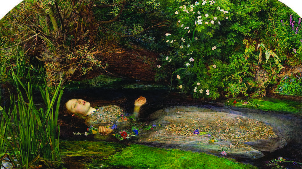 젊고 아름다운 여인이 손에 꽃을 꺾어 들고 강물 위에 떠서 죽음을 맞고 있다. 이 작품은 셰익스피어 희곡 <햄릿>의 한 장면을 묘사한 것으로 유명하다. 덴마크의 왕이 갑자기 죽자 왕비 거트루드는 왕의 동생 클로디어스와 재혼하고, 클로디어스는 새로운 왕이 된다. 햄릿왕자는 아버지를 죽인 사람이 클로디어스라는 사실을 알고 복수심에 불타오른다. 하지만 엉뚱하게도 햄릿은 재상인 폴로니우스를 왕으로 오해해 칼로 찔러 죽이게 되고, 햄릿이 가장 사랑했던 사람이자 폴로니우스의 딸인 오필리아는 이 소식을 듣고 강물에 빠져 죽게 된다는 것이 그림의 배경이다. <오필리아>는 비극적인 죽음을 주제로 그렸지만, 더할 나위 없이 아름답다. 표정에서는 숭고함마저 느껴진다.