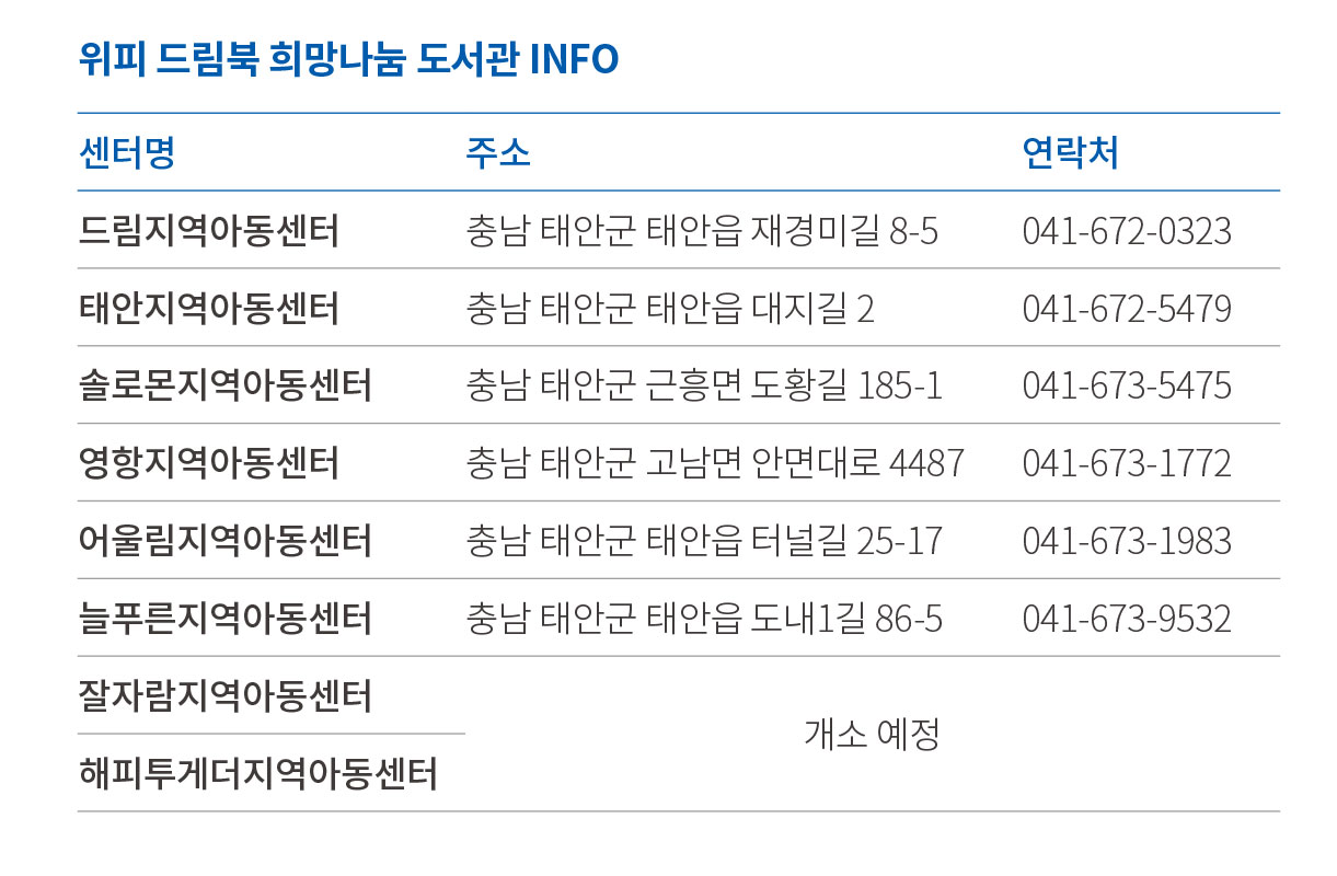태안군에는 8개의 지역아동센터가 있습니다. 지역아동센터는 필요성과 중요성이 부각되고 있지만 열악한 재정 지원 등으로 운영에 어려움을 겪고 있는 경우가 많습니다. 이러한 지역아동센터를 보다 활성화하고 아동들을 제대로 보듬기 위해서 도서관을 마련하게 되었습니다