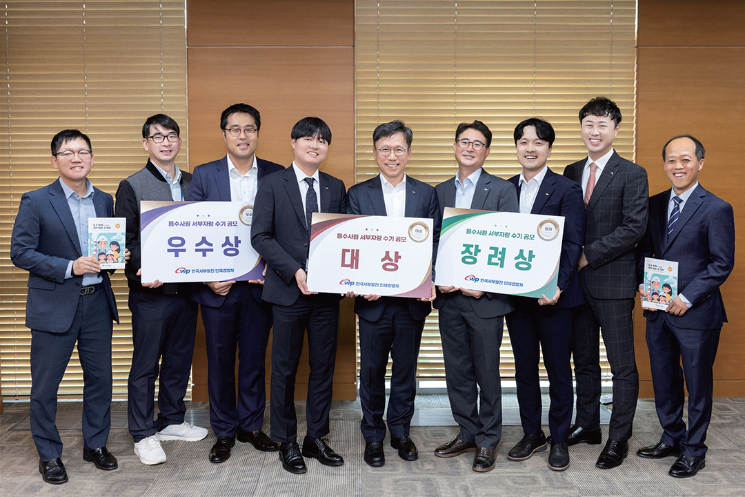 올해 처음으로 열린 ‘음수사원 서부자랑 수기 공모전’은 공모 기간 동안 전 사업소의 직원들이 자발적으로 참여해 성황리에 막을 내렸다. 이에 지난 10월 21일 직원들이 응모한 공모작 중 우수한 수기를 엄선해 시상하고 격려하기 위해 시상식이 마련됐다.