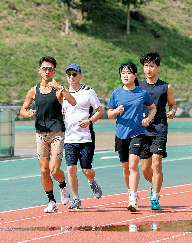 “고개 들고 시선은 앞을 보세요! 팔은 골반을 스치며 뒤로 크게 움직이세요!”라는 강사의 말이 떨어지자, 세 사람은 즉시 자세를 바로잡고 집중했다. 트랙을 두 바퀴, 또 두 바퀴 돌 때마다 땀이 비처럼 쏟아지고