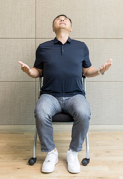 즉시 따라 할 수 있는 쉬운 동작으로 구성돼 있다는 것이다. 언뜻 보면 ‘이게 운동이 될까?’ 싶은 생각이 들 정도. 하지만 그가 시연한 운동을 직접 해 보면 금세 생각이 달라진다. 운동 부위에 존재하던 불편함과
