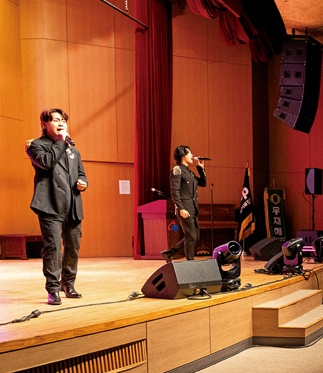 한 가수 손정수가 김건모의 ‘서울의 달’을 부르며 무대에 올랐다. 그의 무대는 발라드 특유의 잔잔함만이 있는 것이 아니었다. 이문세의 ‘빗속에서’를 부를 땐 “오늘 함께 오려 했지만 정문에서 통과하지 못해 모창으로