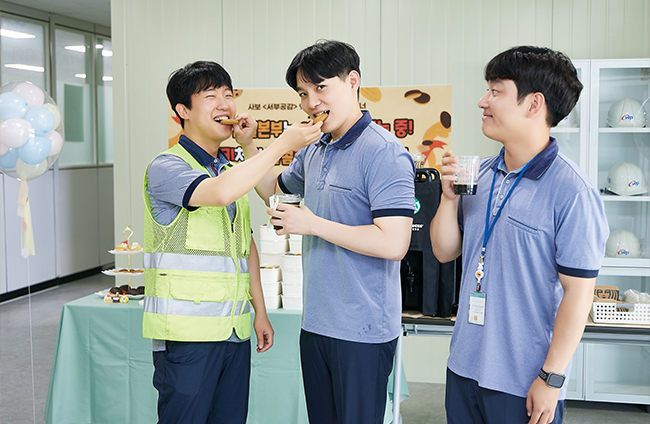 구미천연가스발전소 건설 현장은 주변에 카페 하나 찾기 힘든 곳이라 달콤한 쿠키와 시원한 커피를 들고 현장을 찾았을 때 구성원들의 반응은 더욱 뜨거웠다. 응원의 메시지를 담은 현수막과 알록달록한 풍선은 분위기를 한층
