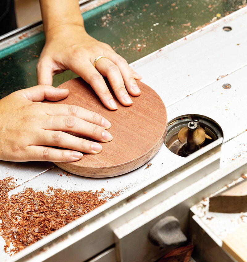 사각사각사각. 나무젓가락을 만들기 위해 나무 표면을 사포로 다듬는 소리다. 도마처럼 부피가 큰 나무는 기계로 다듬지만 얇은 젓가락은 손으로 직접 사포질을 할 수밖에 없다. “힘들지 않으세요?”라는 공방 주인의 말에