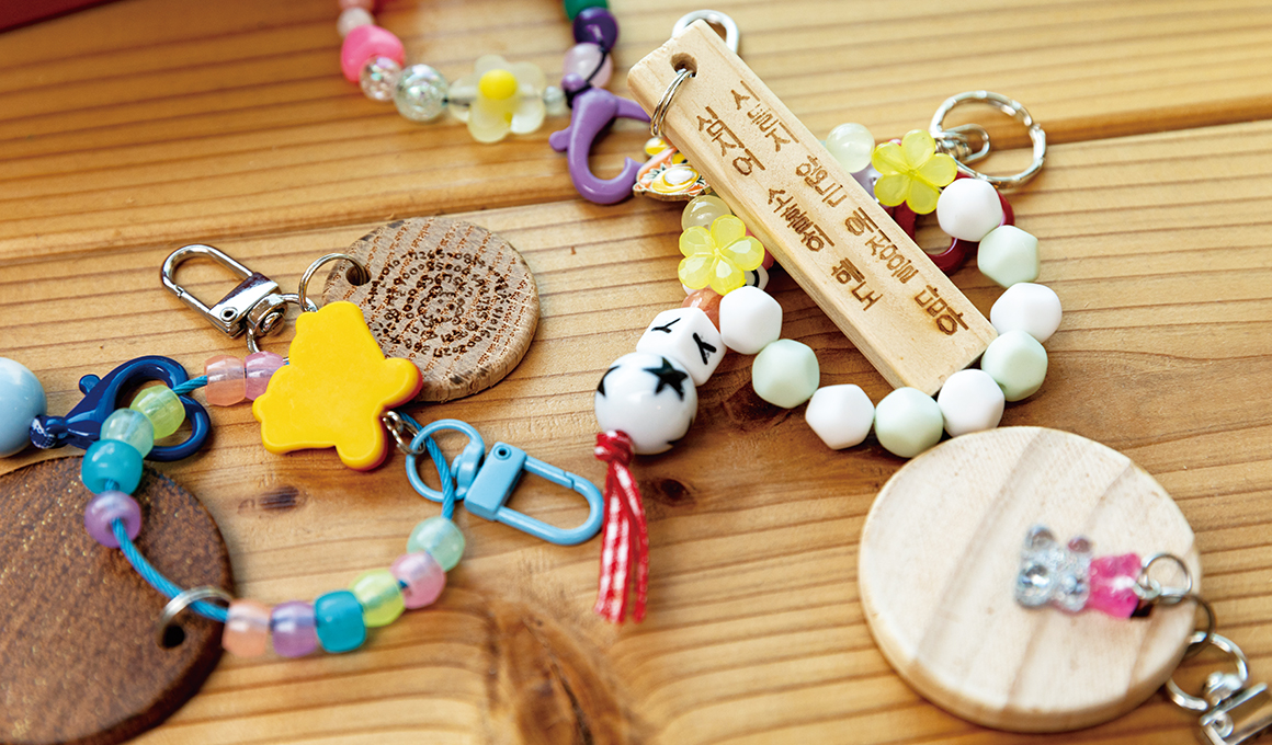 조이너리에서는 화분받침, 연필꽂이 등 다양한 나무 제품 만들기 체험이 가능한데, 그 중에서도 키링 만들기가 가장 인기 있다. 아이가 있는 가족의 방문율이 높아서다. 아이가 직접 줄에 구슬을 꿰고 작은 나뭇조각에 글
