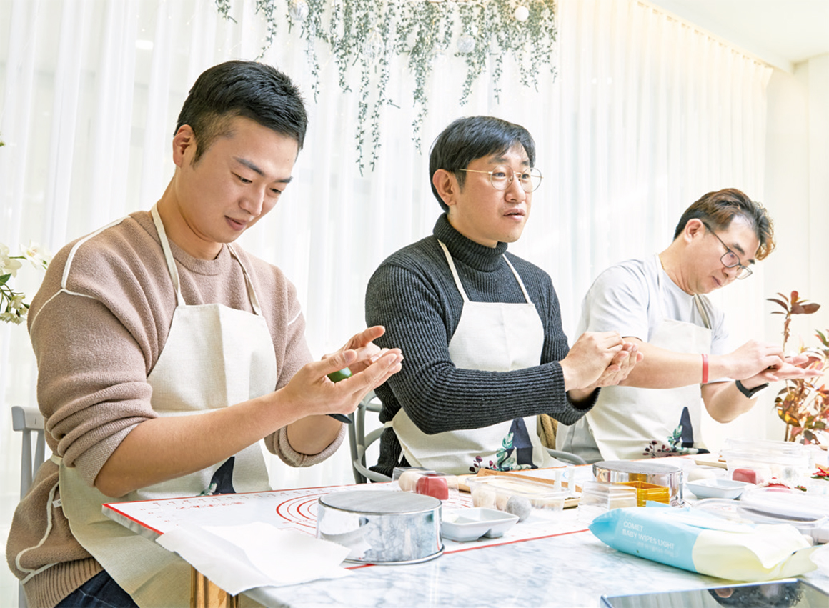 아이들이 엄지를 치켜세울 때면 정말 행복합니다”라고 말한다. 다만 오늘은 아내에게 직접 만든 디저트를 선물하고 싶다며 화과자 클래스를 신청했다.