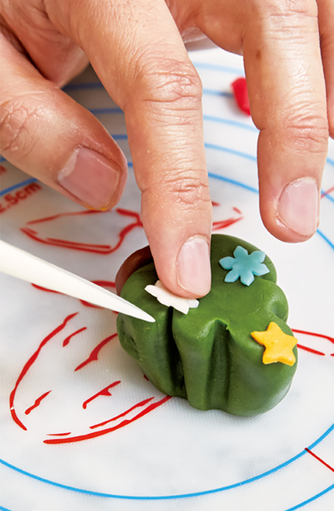 나머지 두 사람도 색 반죽을 얇게 밀어 별과 눈 결정 등을 찍어내고, 각자 개성에 맞게 트리를 완성한다. 이렇게 산타를 시작으로 리스, 포인세티아, 트리, 눈꽃까지 여섯 가지 화과자가 하나둘 완성돼 갔다.