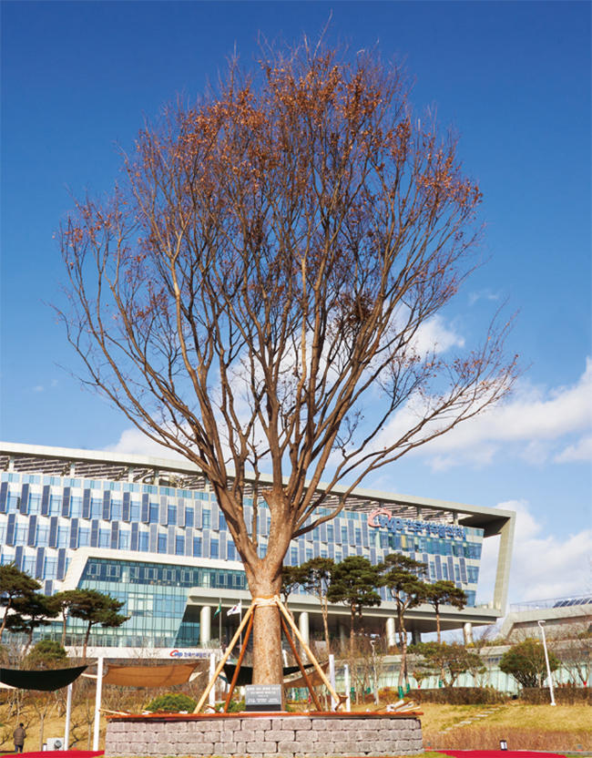 식수한 나무는 에너지 전환 정책에 따라 지난해 12월에 폐지된 평택발전본부에서 이식한 나무이다. 평택발전본부와 50년간 우리나라 전력산업을 함께해 온 나무로, 이곳 본사 정원에서 탄소중립을 선도하고 지속 가능한