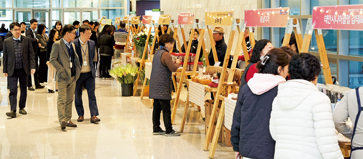 한편, 이날 본사 1층에서 플리마켓이 열리기도 했다. 과일, 땅콩, 디퓨저, 다과 등 다양한 업체의 참여로 1층은 정이 오가는 장터로 변했다. 이 소식을 들은 직원들과 지역주민들이 방문하여 양손 무겁고 발걸음이