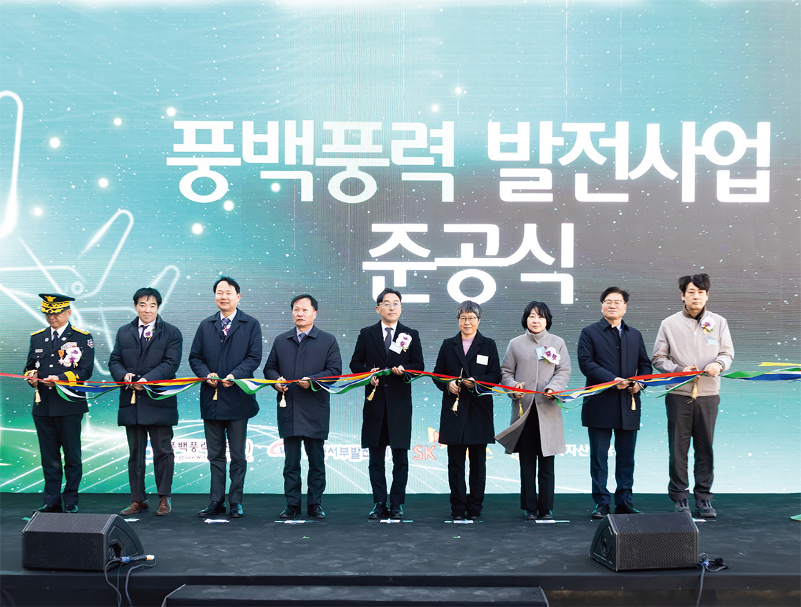 지난 12월 3일, 국내 재생에너지 직접 전력거래계약의 첫 사례가 될 풍백풍력발전단지 준공을 축하하기 위해 관련자들이 한자리에 모였다. 서부발전 이정복 사장을 비롯해 기후에너지환경부 이원주 에너지전환정책실장,