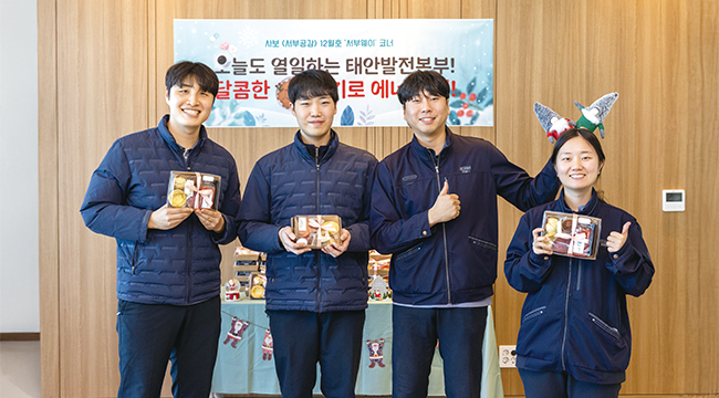 “공사에 함께 힘써준 감독님들, 태안발전본부 직원분들과 함께 나눌 수 있는 맛있는 간식을 보내주셔서 정말 감사합니다!”라는 황의선 차장은 간식 상자를 보며 지난 시간을 함께한 동료들을 떠올렸다. 김성규 대리는 지난