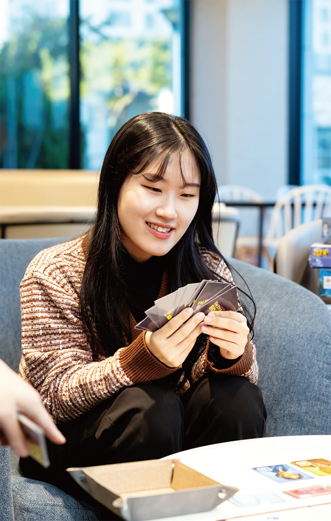 “보드게임의 매력은 새로운 사람들과도 쉽게 친해질 수 있다는 거예요. 공통 관심사를 가진 사람들과 함께 재밌게 시간을 보낼 수도 있고요. 가끔 게임에 집중하다보면 평소의 저보다 더 활발해지기도 하고 승부욕에 불타거나