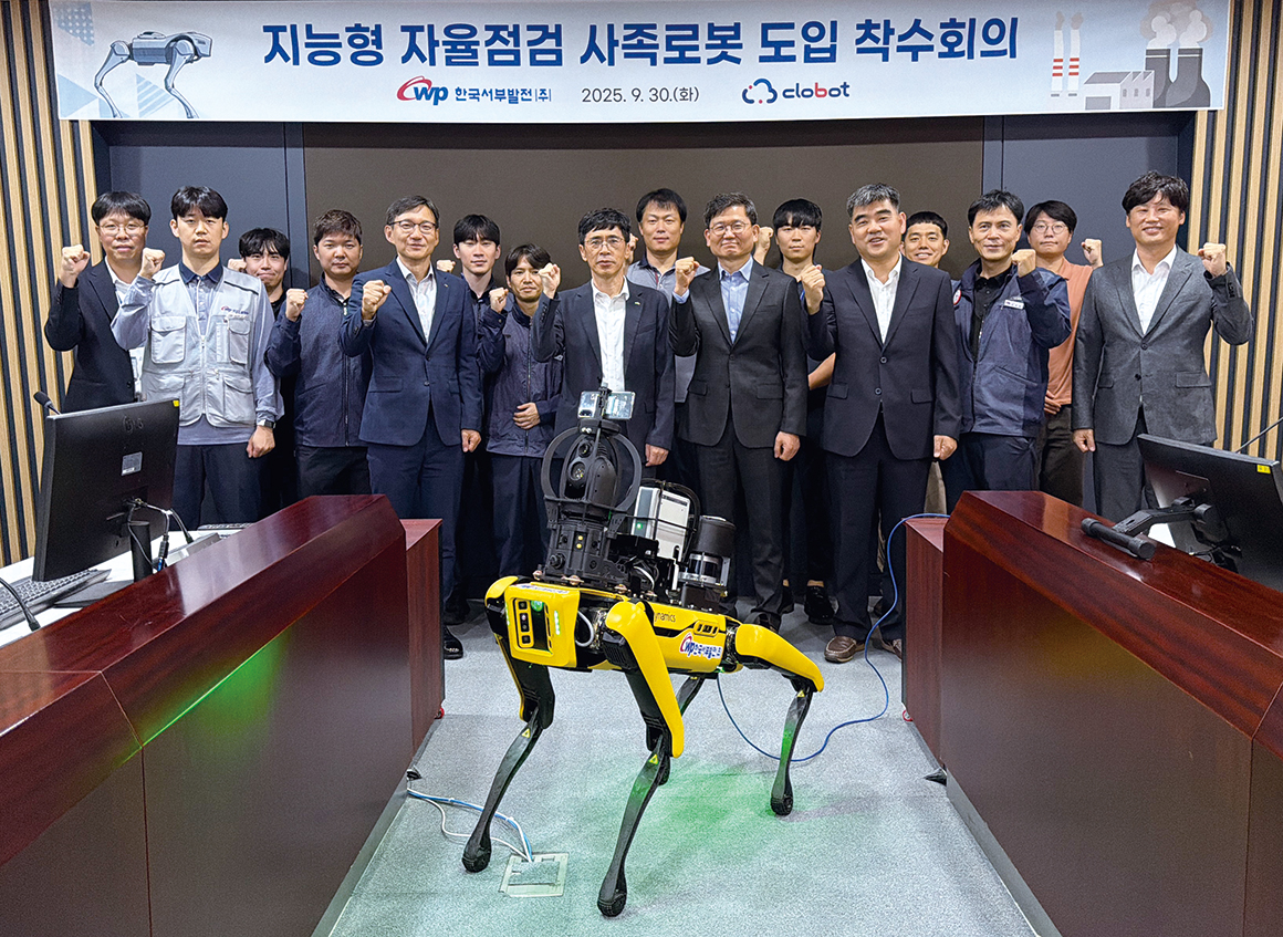 한국서부발전은 9월 30일 태안발전본부에서 ‘지능형 자율점검 사족보행 로봇 도입을 위한 착수 회의’를 진행했다. 착수 회의에는 서부발전과 사업수행기관인 ‘클로봇’이 참석해 사업 추진 방향과 일정 공유, 로봇 시연 등이 이뤄졌다. 지능형 사족보행 로봇은 실영상·열화상 카메라, 음향 센서, 가스 감지기 등을 탑재해 설비 상태를 여러 각도로 진단할 수 있고 사고 발생 시 실시간 영상 전송 기능을 통해 신속한 대응을 돕는다.