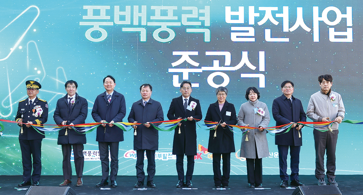 한국서부발전은 12월 3일 대구 군위군 삼국유사면 일대에 조성된 풍백 육상풍력 발전단지에서 준공식을 개최했다. 풍백 육상풍력 발전소는 5메가와트급 터빈 15기가 설치된 대형 단지다. 서부발전은 지분투자와 운영·유지관리 기술자문 역할을 맡아 사업완성에 핵심적 기여를 했다. 이번 준공은 국내 공기업이 풍력발전으로 생산한 전력을 국내 기업에 공급하는 ‘RE100 직접 전력거래계약’이 최초로 실현됐다는 점에서 의미가 크다.